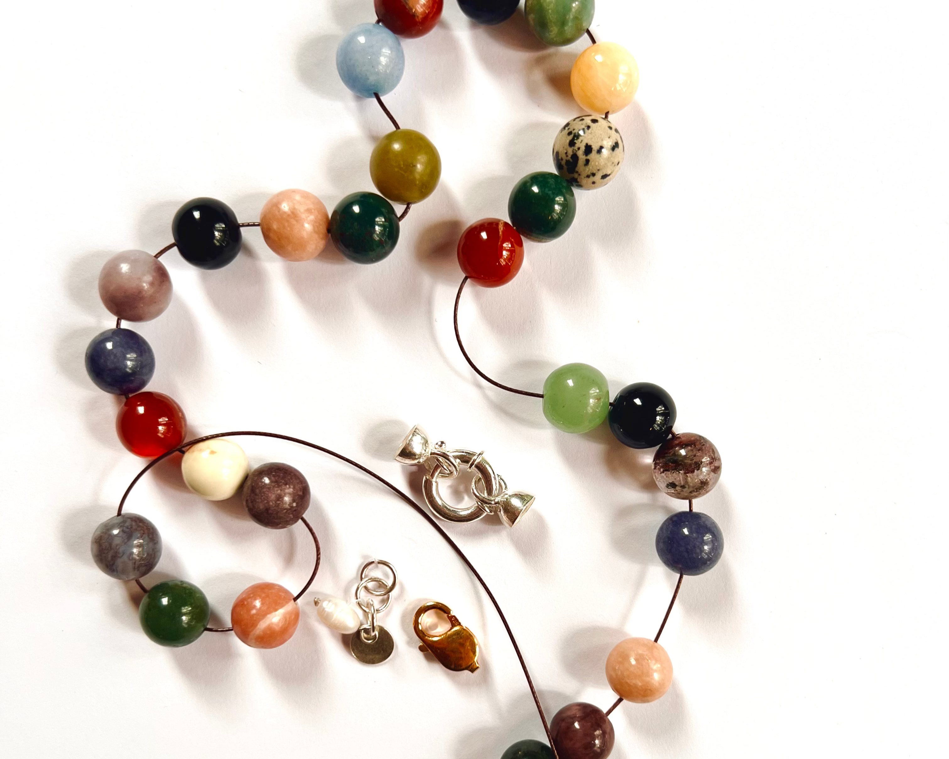 Stringing & knotting techniques – depending on the design, pieces are either strung on a strong, durable cord or crafted with a double-knotting technique for larger beads. This ensures extra strength, prevents stones from rubbing against each other, and helps the jewelry last longer.
